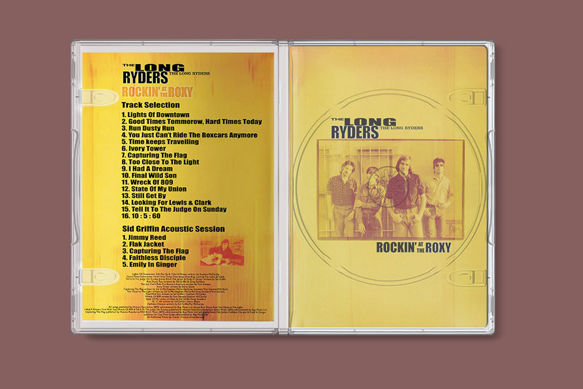 The Long Ryders live in 1986 features the songs: Lights Of Downtown / Good Times Tomorrow, Hard Times Today / Run Dusty Run / You Just Can’t Ride The Boxcars Anymore / Time Keeps Travelling / Ivory Tower / Capturing The Flag / Too Close To The Light / I Had A Dream / Final Wild Son / Wreck Of The 809 / State Of My Union / Still Get By / Looking For Lewis And Clark / Tell It To The Judge On Sunday / 10-5-60 - Sid Griffin solo session, 2001: Jimmy Reed / Flak Jacket / Capturing The Flag / Faithless Disciple / Emily In Ginger